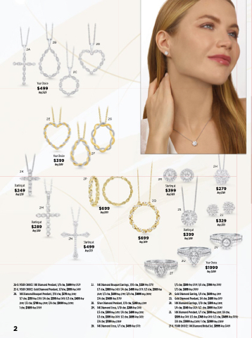 2P. Gold Diamond Earring, 1/4 ctw, $699 Reg $879 2Q. Gold Diamond Pendant, 1/4 ctw, $699 Reg $879 2R. 14K Diamond Earrings, 1/10 ctw, $399 Reg $499;