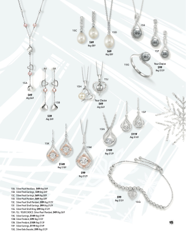 15H.-15J. YOUR CHOICE: Silver Pearl Pendant, $49 Reg $69 15K. Silver Earrings, $149 Reg $199