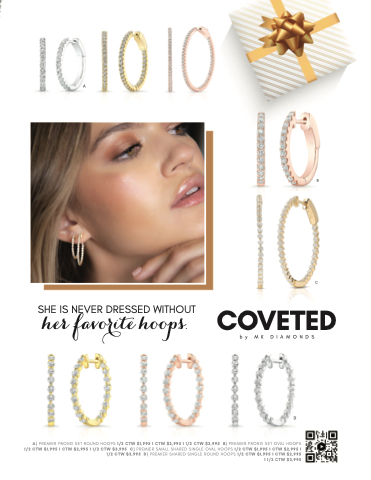 A B C COVETED by MK DIAMONDS D A) PREMIER PRONG SET ROUND HOOPS 1/2 CTW $1,995 1 CTW $2,995 1 1/2 CTW $3,995 B) PREMIER PRONG SET OVAL HOOPS 1/2 CTW $1,995 1 CTW $2,995 1 1/2 CTW $3,995 C) PREMIER SMALL SHARED SINGLE OVAL HOOPS 1/2 CTW $1,995 1 CTW $2,995 1 1/2 CTW $3,995 D) PREMIER SHARED SINGLE ROUND HOOPS 1/2 CTW $1,995 1 CTW $2,995 1 1/2 CTW $3,995 her favorite hoops. SHE IS NEVER DRESSED WITHOUT